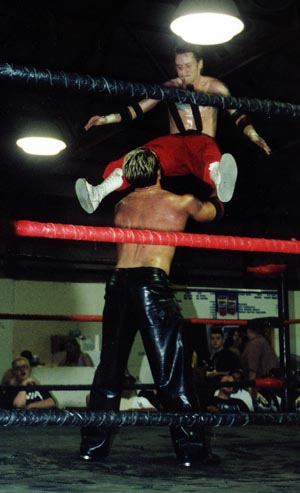 IWA is having a show in the Chicago area April 27th. Heres what the fans are expected to see. (ALL pics are from the IWA website) CM PUNK northern suplexes Dino Bambino IWA's "monkey boy" Chris Hero Hy-Zaya flies with a suicide plancha! HOLY SHIT! Mike Quackenbush head scissors Danny Dominion! Mad Man pondo and Ian Rotten demonstrating the hardcore side of IWA! American Dragon does a top rope head scissors to Danny Dominion!